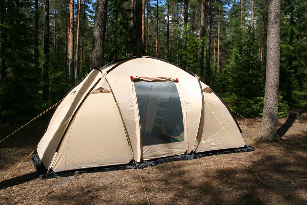 Общие впечатления: Большая вместительная семейная палатка с приличным тамбуром. Простая сборка. Внешние дуги. Сетка на внешних и внутренних входах. Вертозащитная юбка. Высокий тамбур. В общем просторно =).