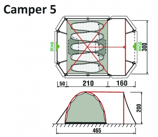 | Размеры внешней палатки (см) | 465 x 300 x 200 |