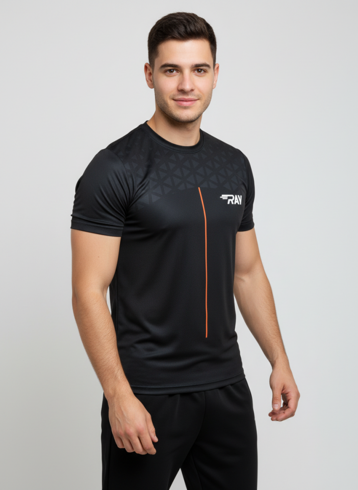 Футболка RAY (Men) принт линия чёрный/оранжевый