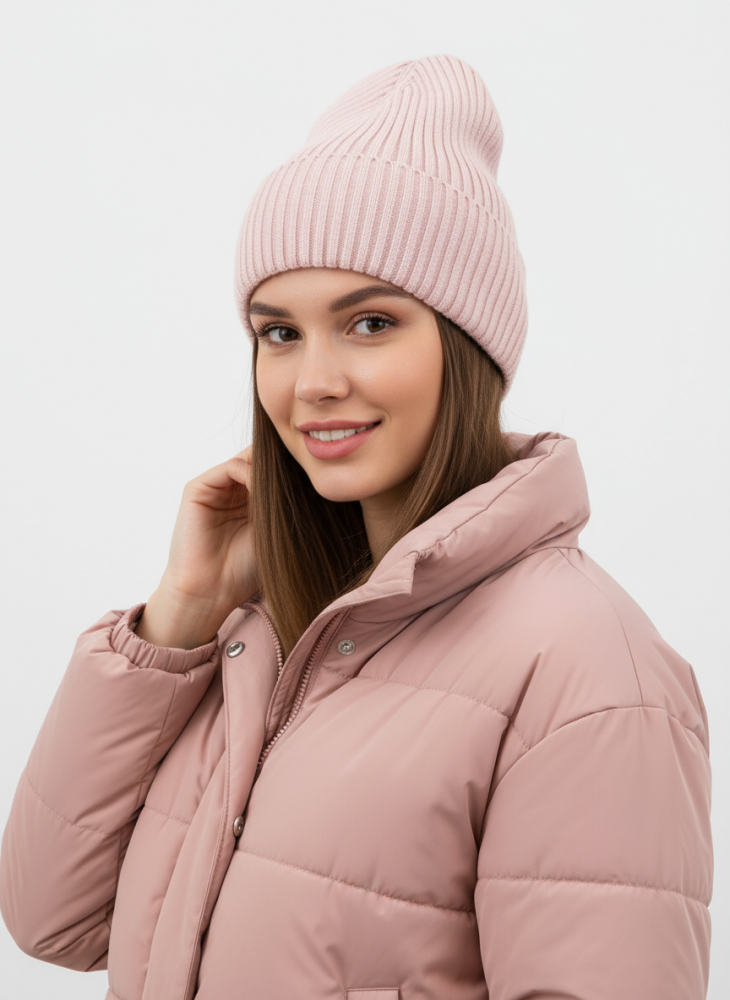 Шапка RAY вязаная с подворотом, светло-розовый