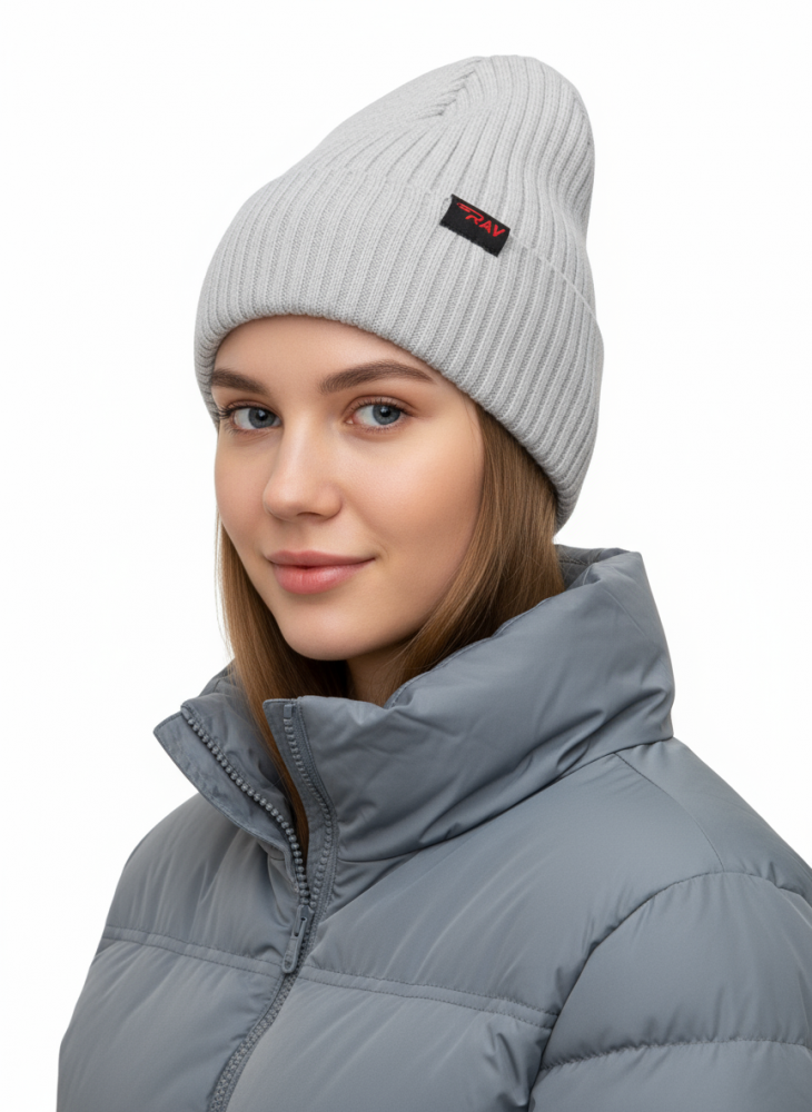 Шапка RAY вязаная с подворотом, светлый меланж