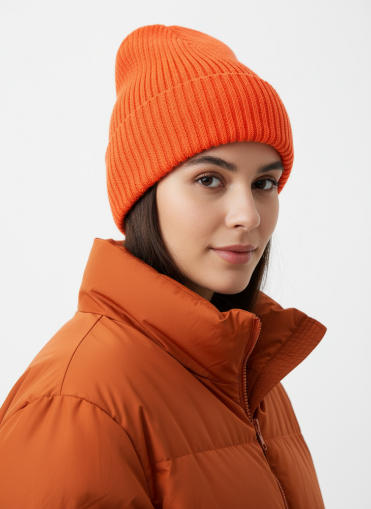 Шапка RAY вязаная с подворотом, ярко-оранжевый