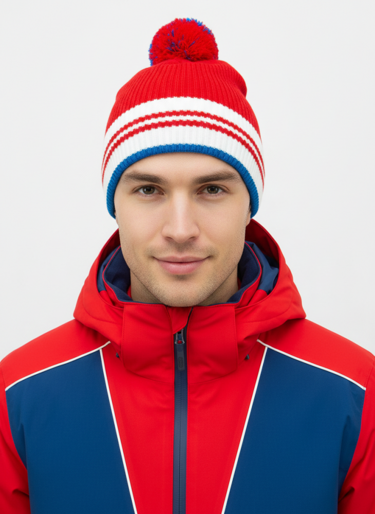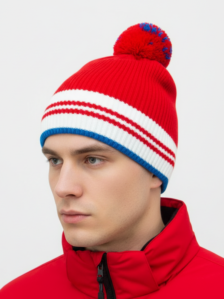 Шапочка RAY вязаная Финиш бубон, красный/белый/синий