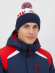 Шапочка RAY вязаная Ray-снежинка бубон, белый/темно синий/красный
