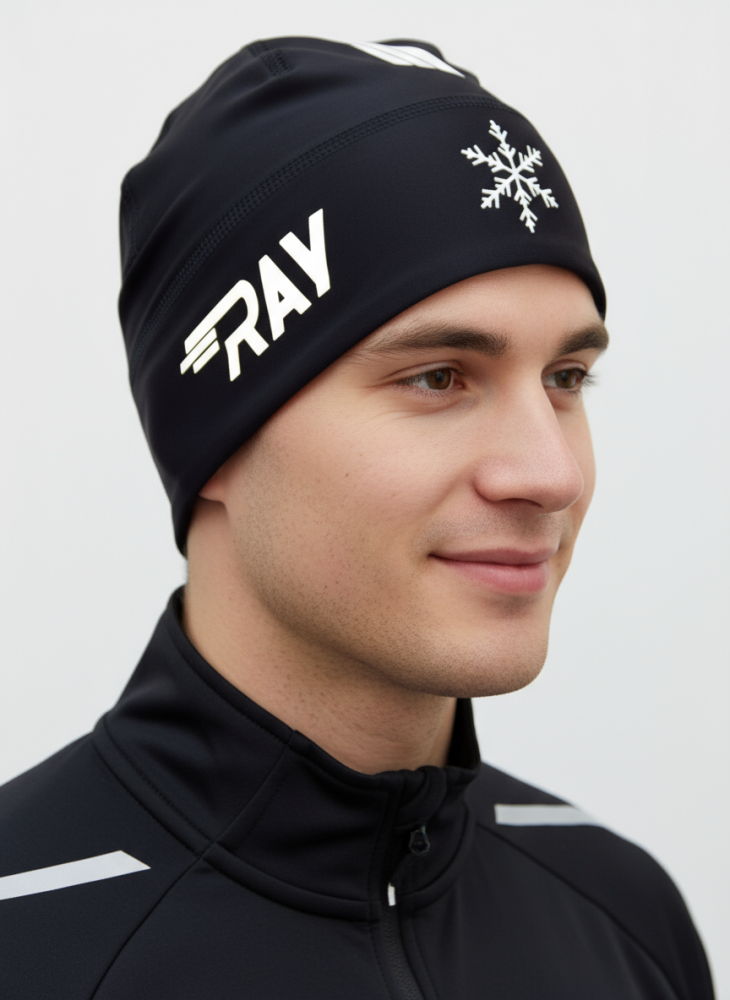 Шапочка RAY модель RACE материал термо-бифлекс, черный/белый лого